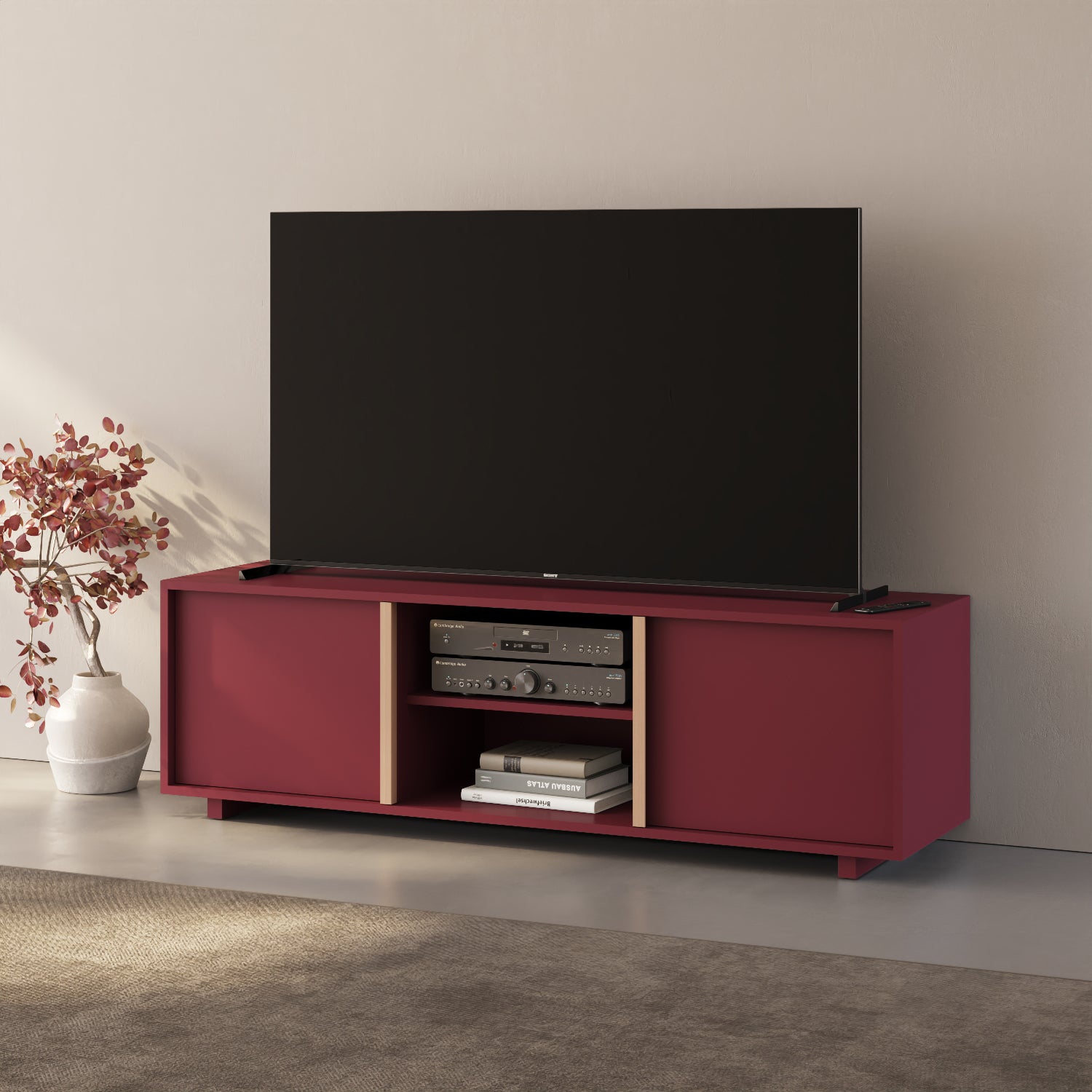 Ile è un mobile tv che nasce da un’idea di sintesi formale: una geometria essenziale che si definisce attraverso proporzioni equilibrate e dettagli misurati.