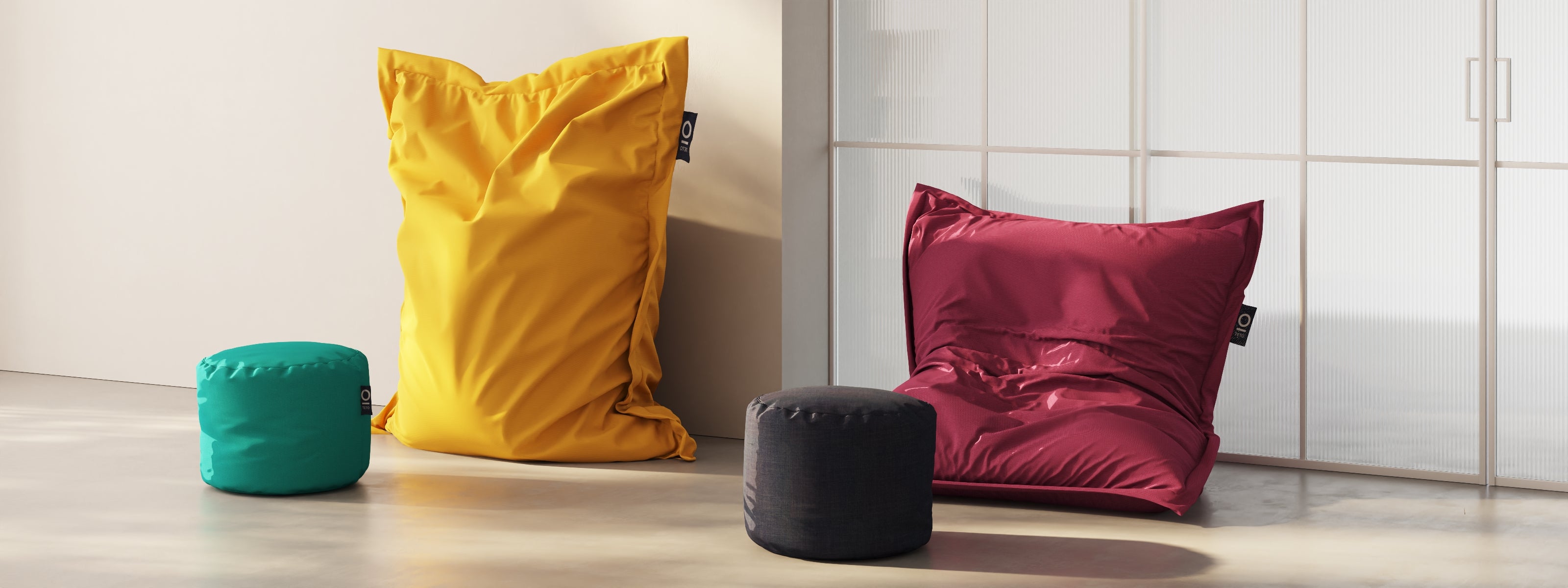 Beanb è una poltrona informale e avvolgente, perfetta per spazi dedicati al riposo o alla condivisione. Comodo e Adapto offrono sedute modulari e versatili, pensate per creare composizioni personalizzate e dinamiche.