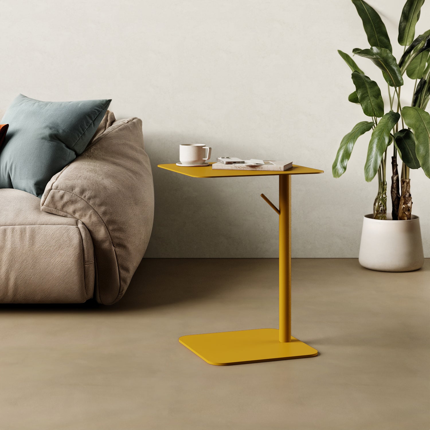 La struttura sottile e i bordi arrotondati donano leggerezza visiva, mentre la superficie ampia lo rende pratico per accogliere libri, vassoi o accessori.